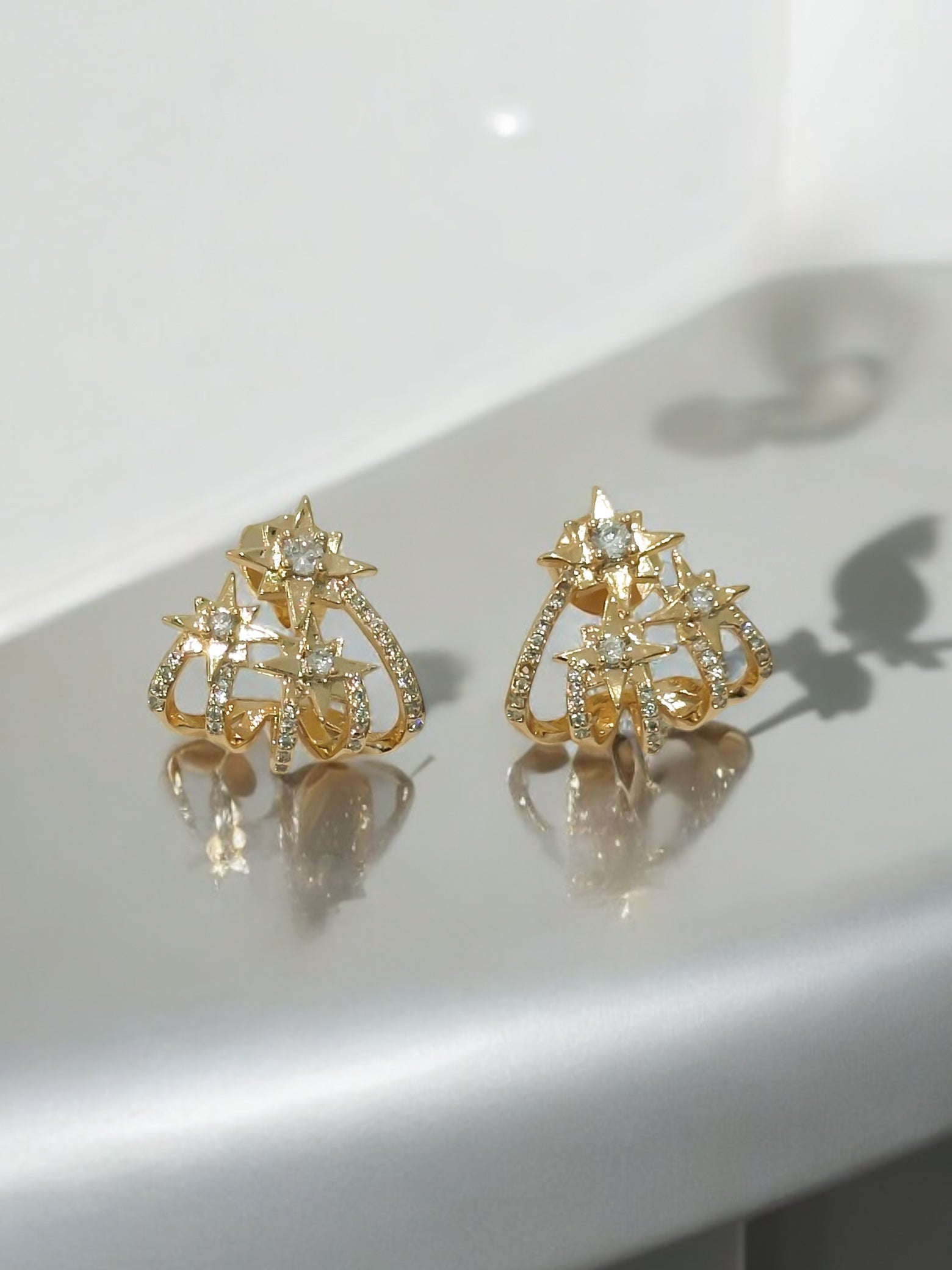 Our Alasia Earrings feature a cluster of three stars, each adorned with sparkling crystals that catch the light. The intricate design adds a touch of celestial charm, making them the perfect accessory for adding a bit of shimmer to an outfit.