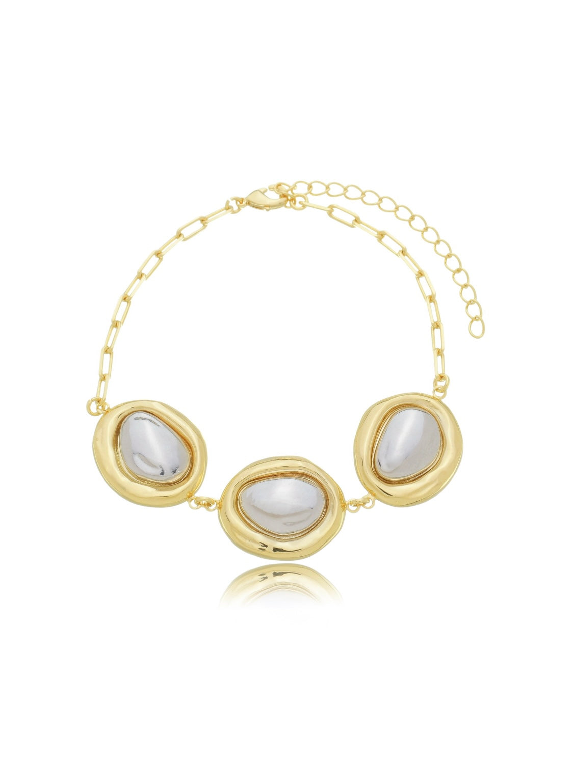 This stunning two-tone gold freeform bracelet features a unique design that beautifully blends warm yellow gold with cool white gold. The freeform shapes create an organic, fluid look, making it a versatile piece that can elevate both casual and formal outfits. Its polished finish reflects light beautifully, adding a touch of elegance and sophistication. Perfect for making a statement, this bracelet is an ideal accessory for those who appreciate modern artistry in their jewelry.