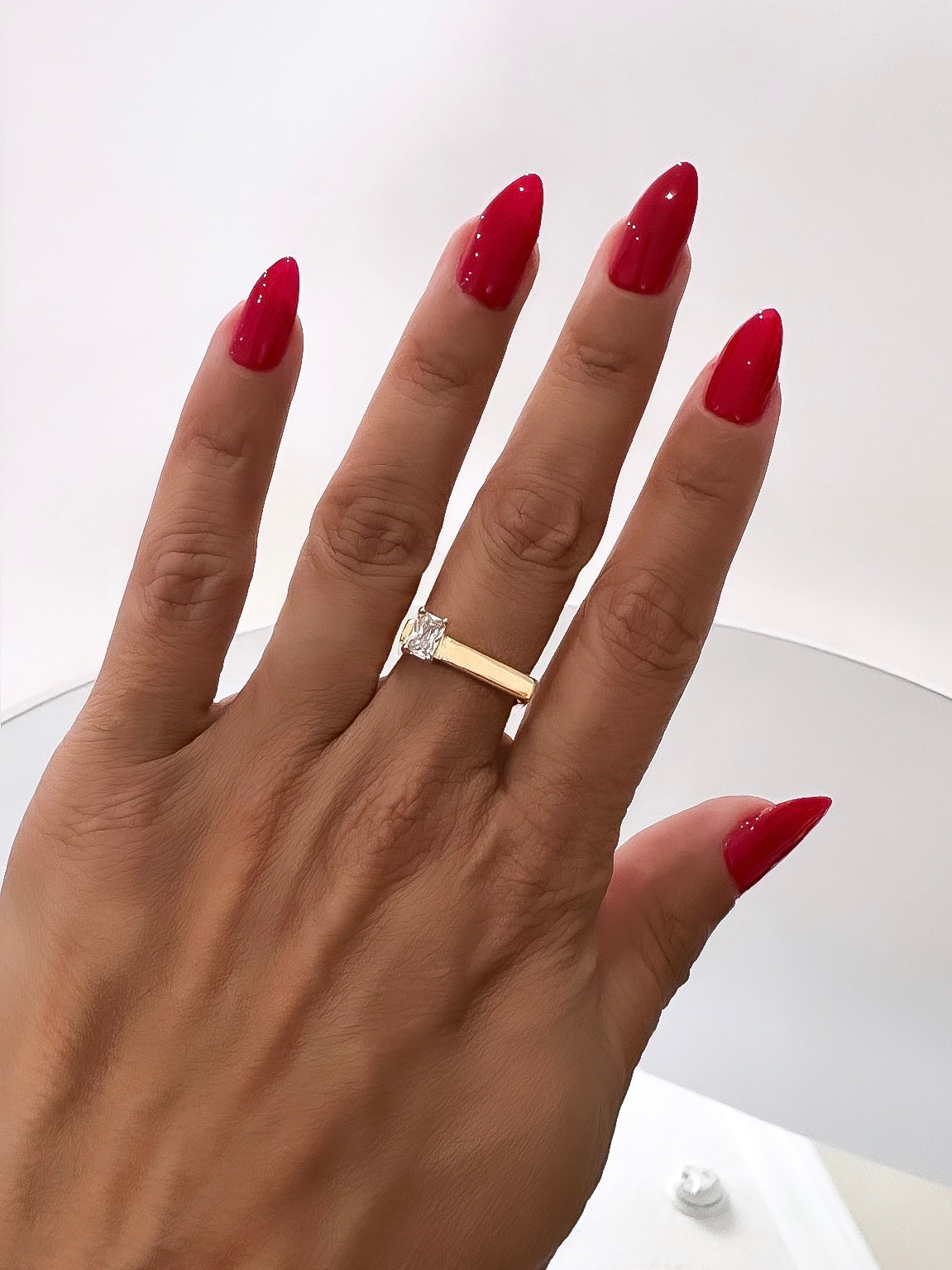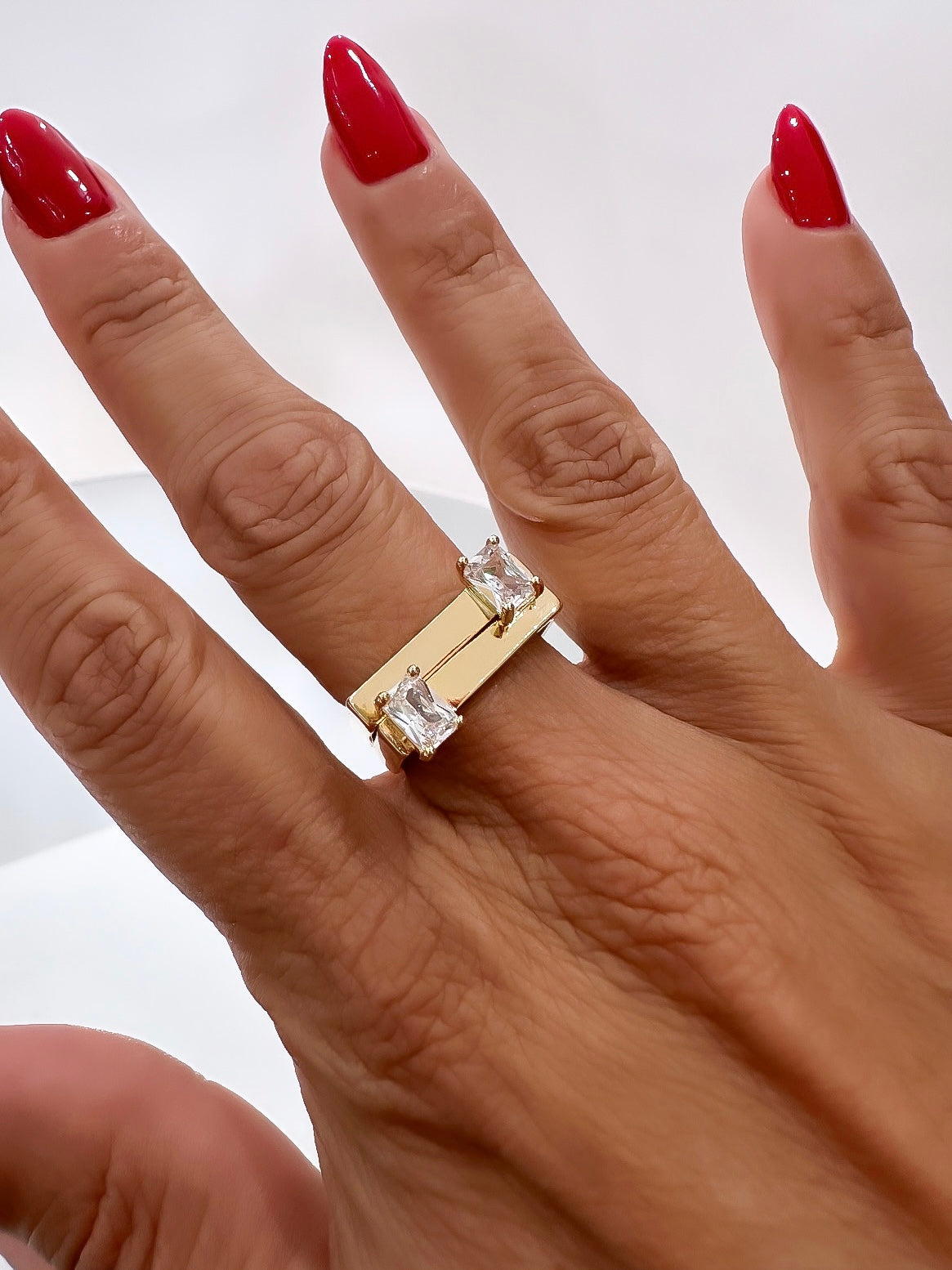 - Modern square ring with rectangular stone (single ring)