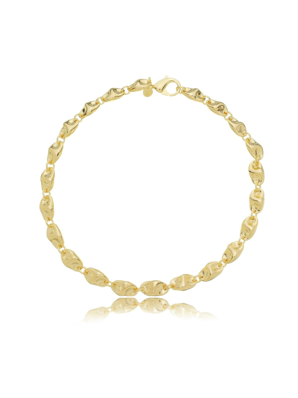 Introducing our Neolithic Necklace — a statement piece that effortlessly combines bold style with natural elegance. Plated with 18k gold, this necklace features organic shaped links that flow gracefully, creating a striking visual impact. Its unique texture and shape reflect our artisanal craftsmanship, making it perfect for layering or wearing alone as a focal point.